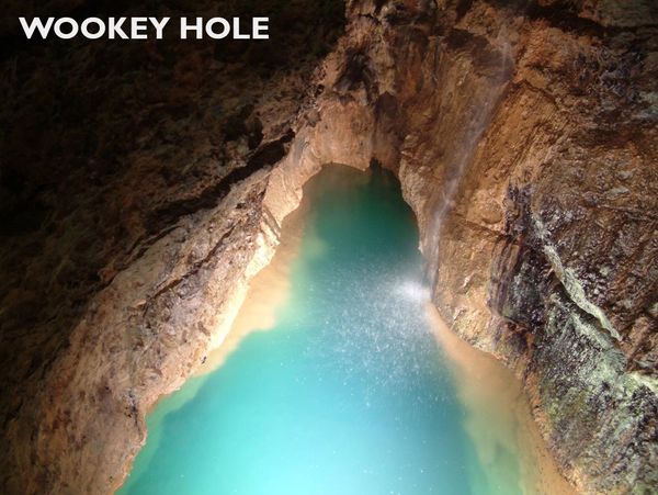 This is a show cave, evolved into a very popular tourist attraction situated in the village of Wookey Hole on the southern edge of the Mendip Hills near Wells in Somerset. The cave is well known for the story of a vague human shaped rock outcrop, known as "The Witch of Wookey Hole" who was reputedly turned to stone by a monk from Glastonbury. This site is also known for the first cave dives in Britain.